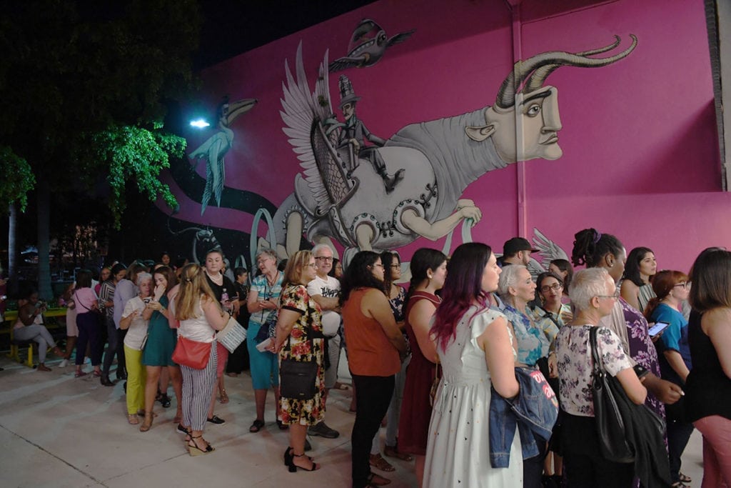 Any good party needs a fair bit of set up – except in this case – we didn’t have that luxury! The premiere party was held at the amazing Miami Ad School in Wynwood. Since it’s a school, there were classes all day long, which meant we had to wait until the last class dismissal before set up could formally begin. No biggie. If Making It taught me anything, it’s how to thrive under time constraints! The only thing I DIDN’T bank on, was the line! A line. A LINE!!! The Damask Lovely squad DOES NOT play around when it comes to a crafty party. Guests began arriving as early as 7PM and patiently waited outside until doors open at 9PM.