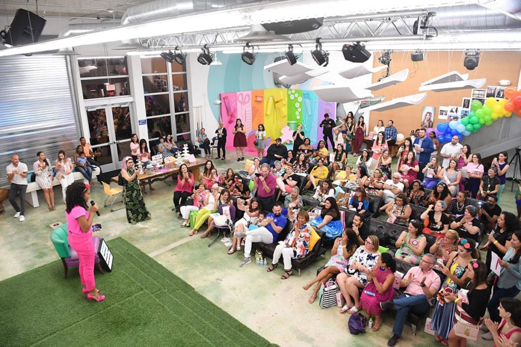 The obvious first stop for every attendee was the photo installation created by Lilly of The Creative Heart Studio. Together Lilly and I dreamed up a 12’x12′ rainbow room filled with larger than life craft supplies. I think we can all agree that Lilly KILLED IT! Everyone LOVED the installation and I’m sure you can see why.