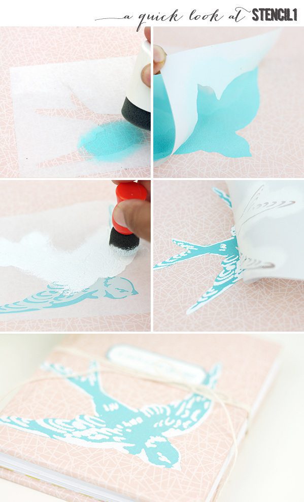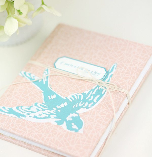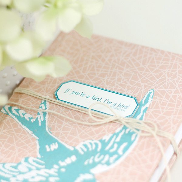 When I received the bird stencil, I immediately thought that it’d be fun to create a notebook inspired by “The Notebook” – so I stenciled the image onto patterned paper and added one of the very sweet lines from the movie: “If you’re a bird, I’m a bird.” This would be a great gift for a friend.