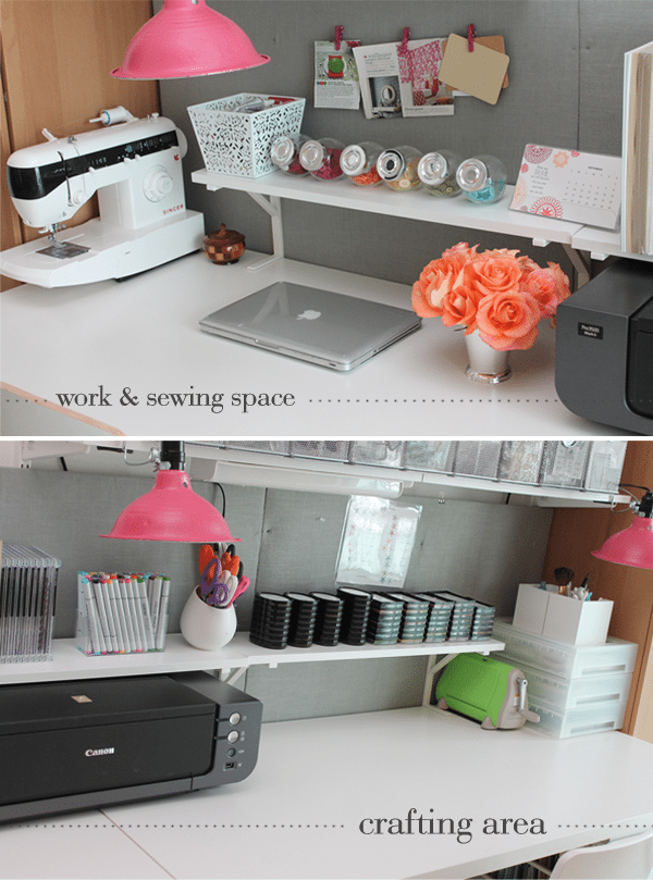 When it’s time for me to sit down and get crafty, I divide my craft desk into two spaces….