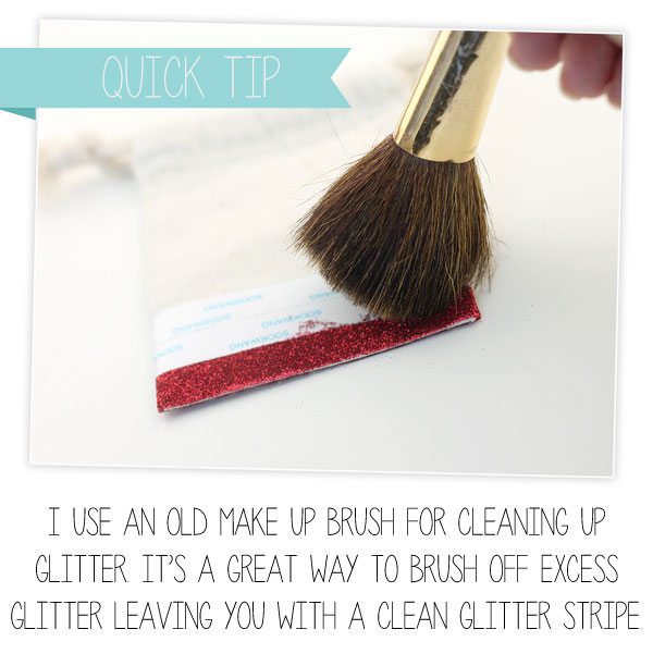 - Rub glitter firmly into place with your finger then shake off the excess