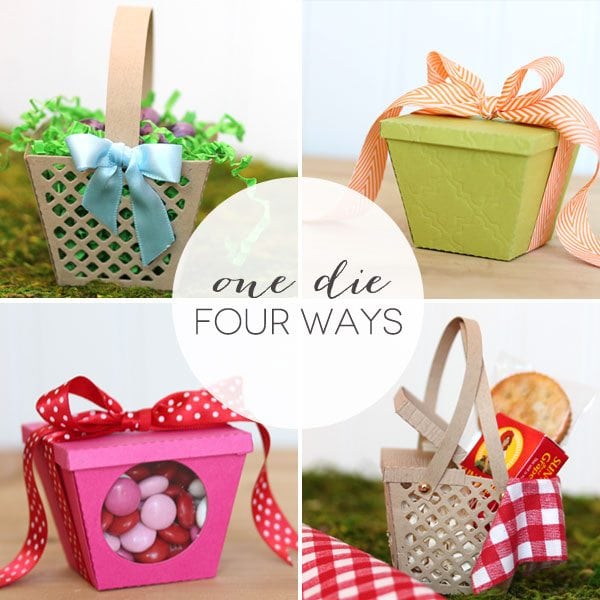 The Basket Die is a seven-piece template die that I think is great for spring! Once assembled the die measures 2″ high and 2.5″ across it’s widest points. It’s an itty-bitty basket, but great for Easter treats or springtime favors.