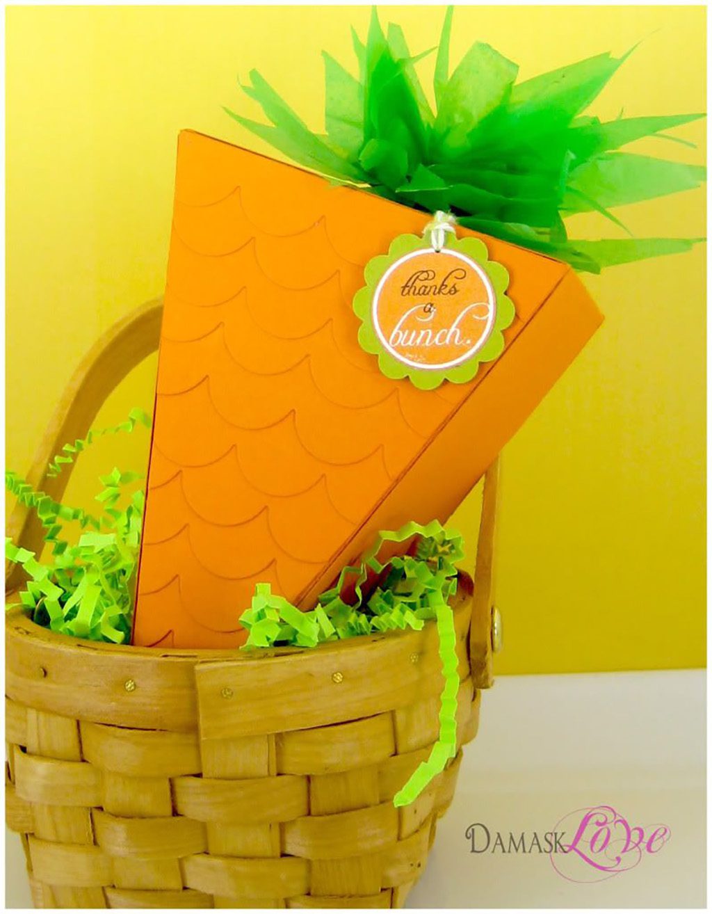 Just stopping in to share another project using my cake box template…which, ironically enough, I have yet to use to make an actual cake box! This project is a cutie…at least I think so! I made this for a co-worker who loves to garden! She was kind enough share some…