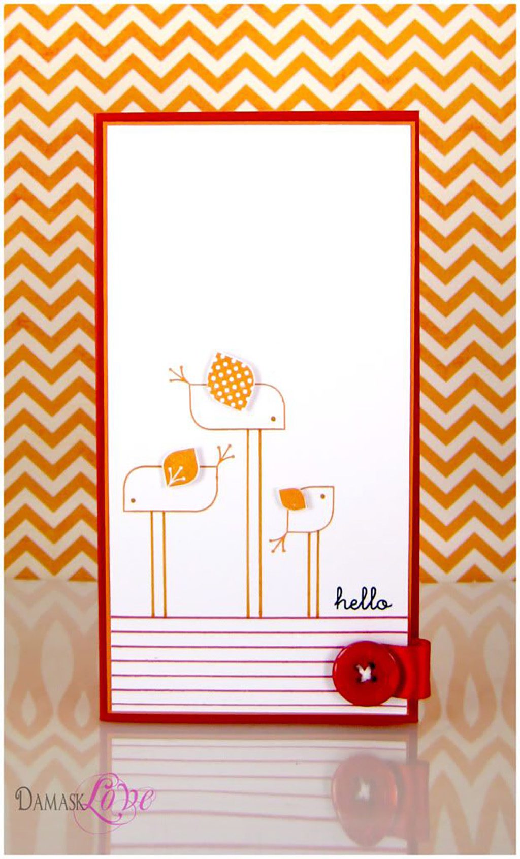 Quick Post. Quick Card. I’m saving up my words for tomorrow’s post – it’s gonna be a long one! The colors: The card: The end! Thanks for stopping by, Damask Lovers. See you tomorrow for the Papertrey Ink Blog Hop! Supplies: Stamps: Stampendous Feather, Sentiment (source unknown) Paper: PTI Rustic…