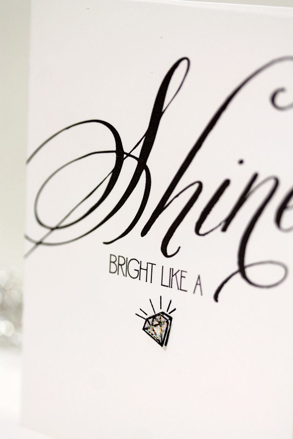 I designed the card using Adobe Illustrator, then added a stamped diamond image from My Cute Stamps Celebrate Chandelier stamp set. Some Diamond Stickles added much needed sparkle to the card…and that’s it.
