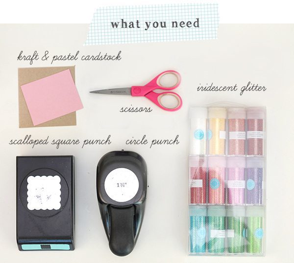 I added a hefty dose of glitter to each cone with the Martha Stewart Iridescent Glitter collection, which is my new favorite. I’m having a bit of glitter moment, I guess. To give each cone a glittery look, I just added strips of DIY glitter tape to pieces of cardstock, and then followed the tutorial steps listed above.