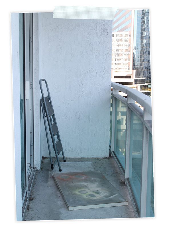 I went back and forth about what space I would revamp. First, I thought I’d give our master bedroom a makeover but I quickly gave that one the kibosh when I realized that I’d have to sew a new duvet…which is a skill that this girl does not have. Then I considered the master bathroom…I’m sure you’ll thank me for not going that route. Then I started thinking “outside” the box…quite literally. The balcony outside of Markus’ room was in major need of attention. It was gross. Here’ the proof: