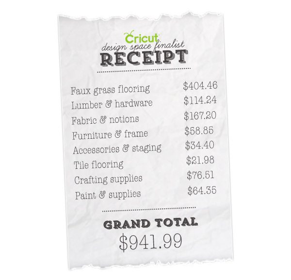 Now for the damage. To stay accountable and show you the rundown of how I spent my $1,000 budget, I’m giving you a look at my “receipt.”