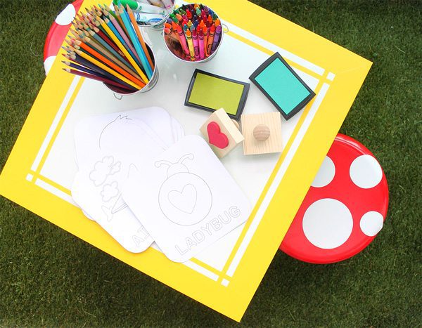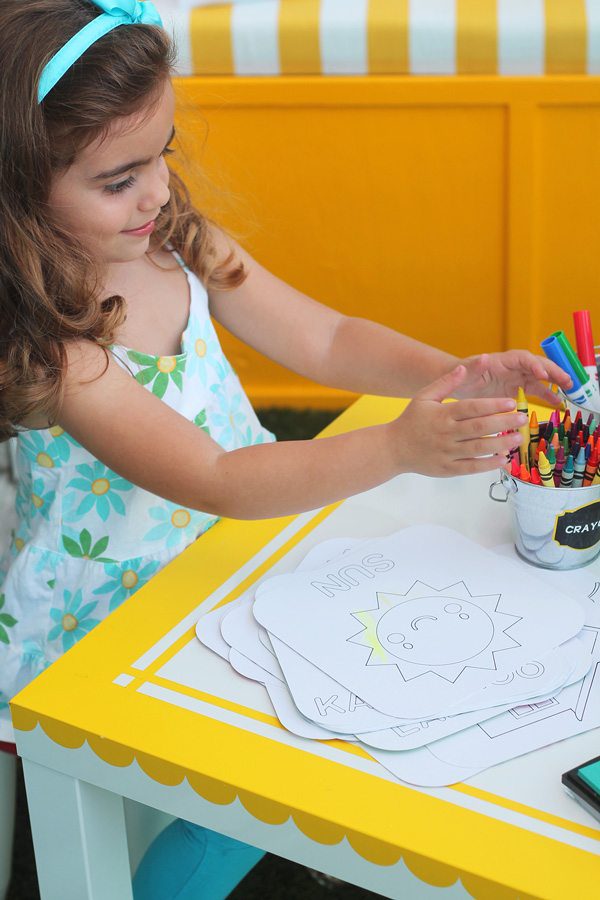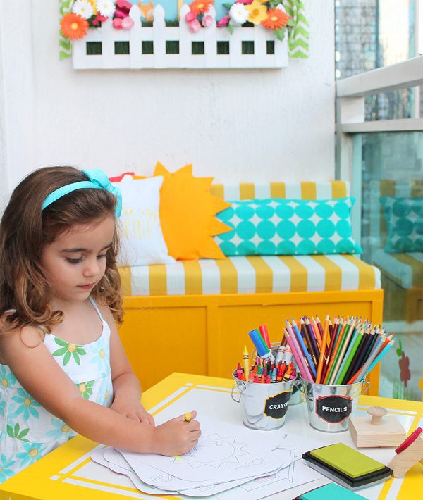 Miami winters are beautiful and offer the perfect excuse for outdoor projects like this. The cool temperature means that you can spend hours outside without sweating your eyeballs out. This outdoor playroom is paradise for any kiddo and is a great way to celebrate a comfortable winter and welcome spring. As always, I kept the colors bold and bright and filled this space with tons of projects that will keep any child occupied for hours.