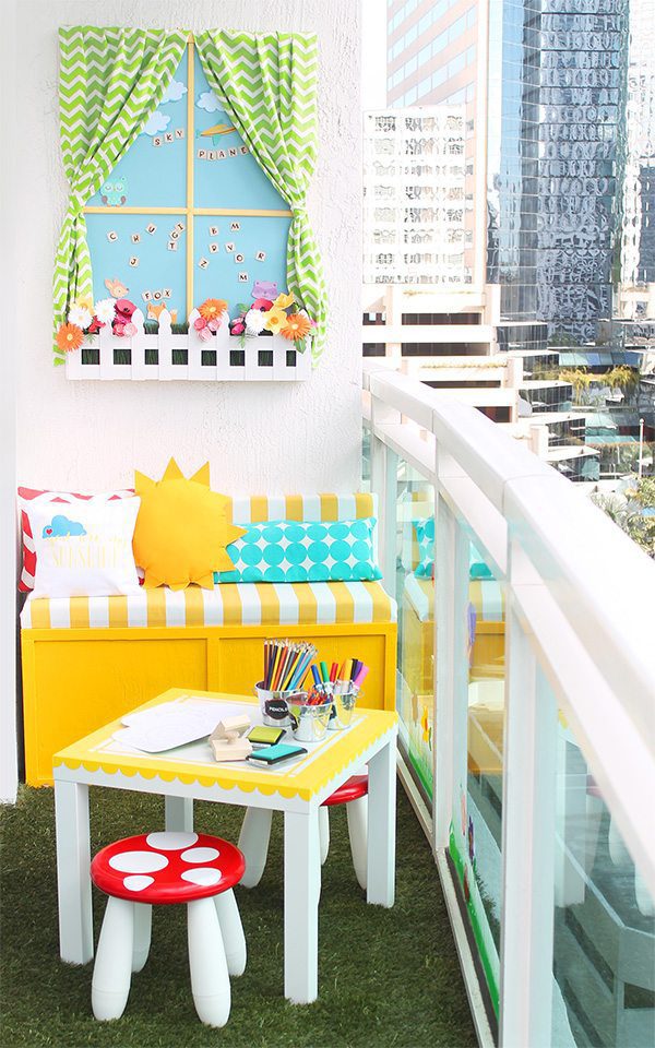 Amber – what you did with this balcony is totally awesome. You completely transformed it in every way possible. What little girl or boy wouldn’t want this playroom in the sky.