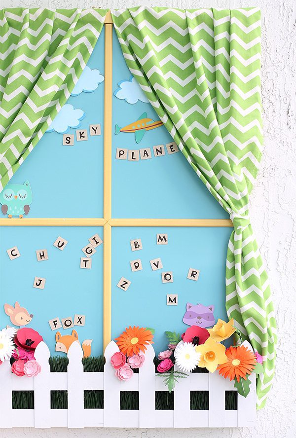 When I started brainstorming for the Playroom in the Sky, I knew I wanted to use and many materials as I could to show the range of the Cricut Explore. Here’s the rundown of what materials I cut in my playroom project: