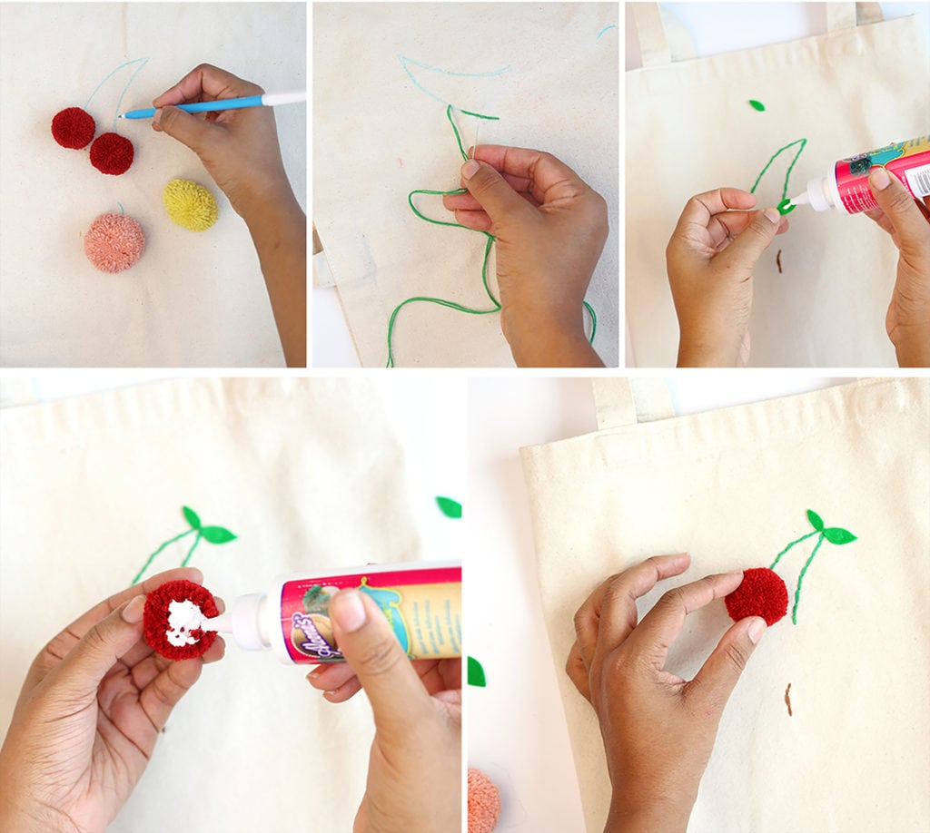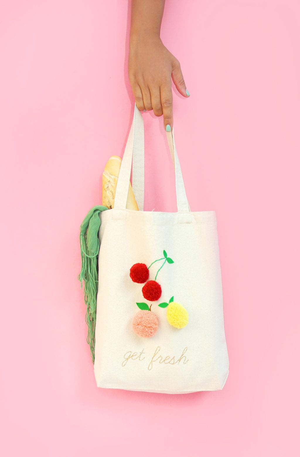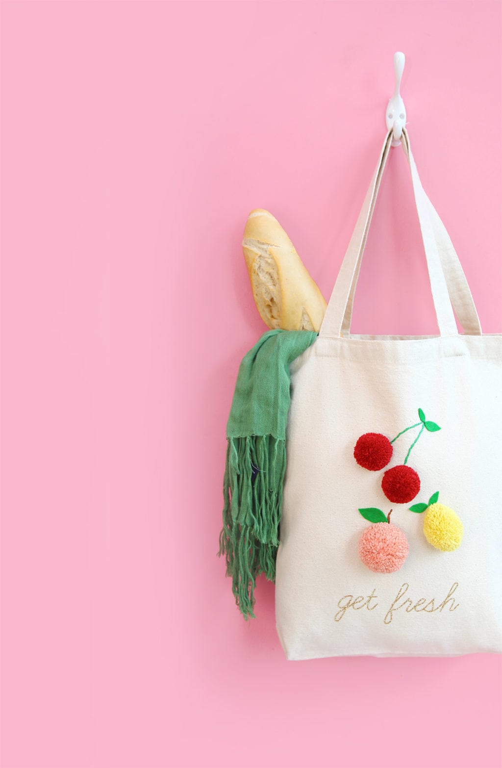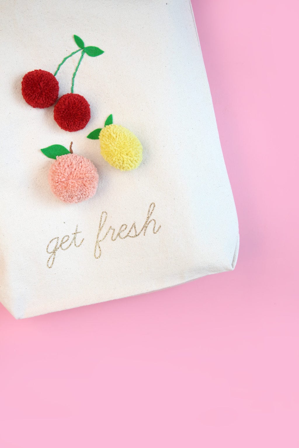 Can’t wait to hear what you think about today’s project. Can you think of any other pom-pom-able fruits that could go on this tote?