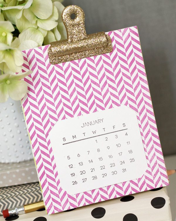 The finished calendar is bright and simple and just my style. It’s also easy to change out for the new year, since you only need to replace the calendar card inserts.