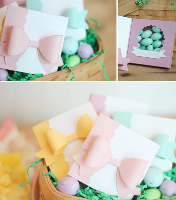 For these cuties, I die cut the Party Favor 8 die from pastel cardstock. Since the die is approximately 12″ long, you won’t be able to get a full cut from traditional 8 1/2″ x 11″ cardstock. In this case, I solved that by creating a pretty scalloped edge and then extending the remaining part of the box with a piece of white cardstock.