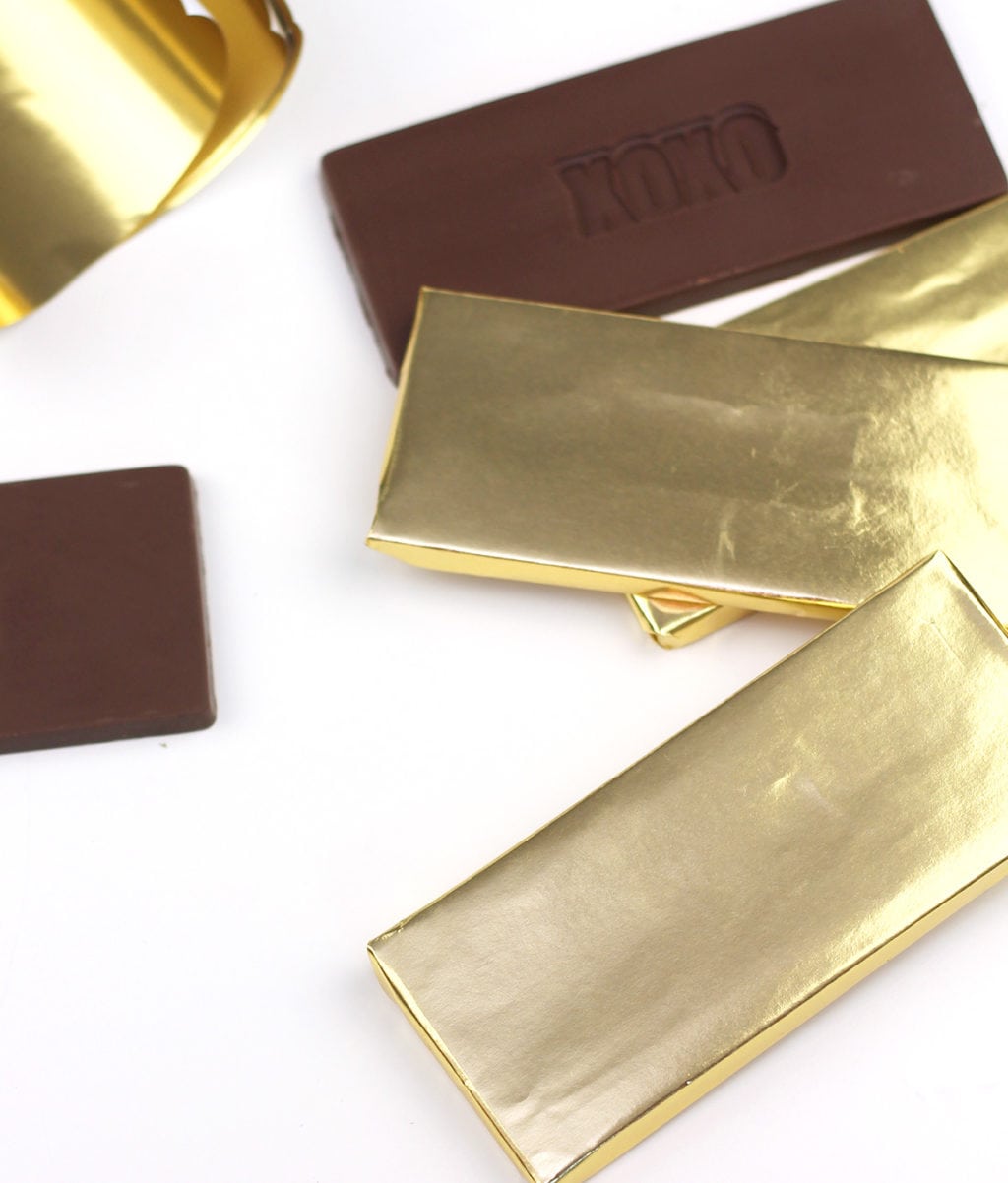 - Once hardened, remove the candy from the mold and wrap with gold foil (shown below)
