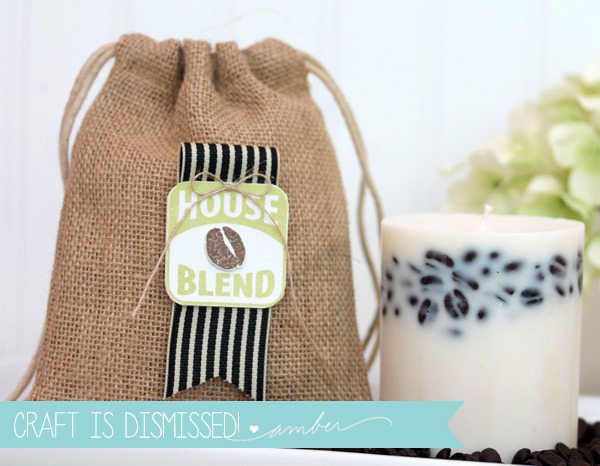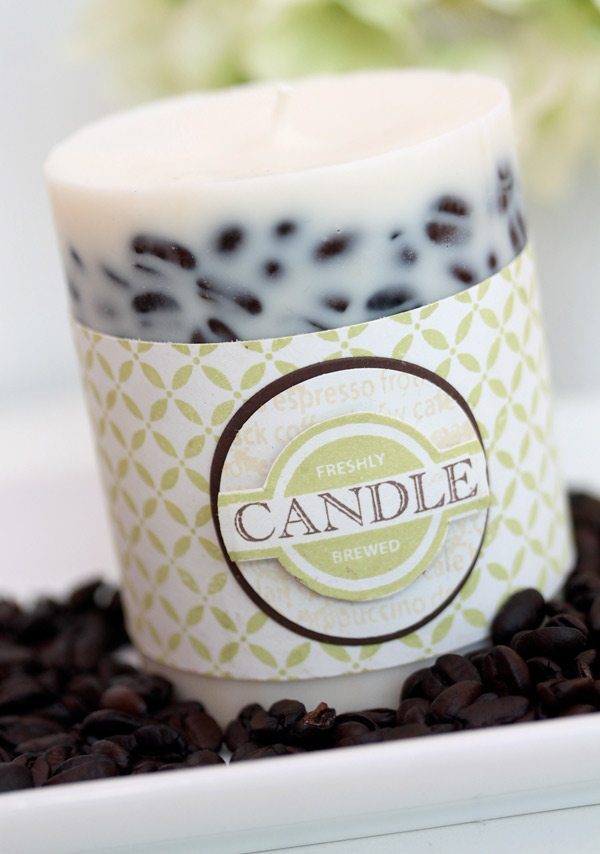 {2} Homemade coffee bean candle with wrap stamped with Background Basics 3, Morning Brew, Au Naturel: Extras and Morning Brew: Coffee.