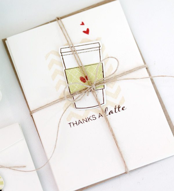 {5} Thank you cards stamped with Morning Brew: Coffee and Labels 13 Fillers.