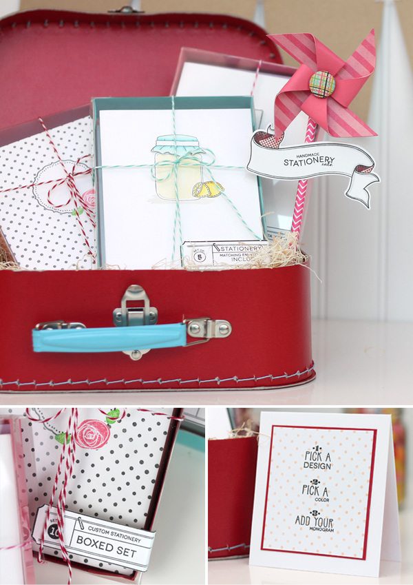 So today, I’ve got some inspiration for a craft fair booth of your own. See, if I had a craft booth, I would make it bright and colorful with a selection of handmade cards that could be customized for each customer. If I had a craft booth, I would use the File It: Stationery set from Clear & Simple Stamps to give my card sets a professional look.