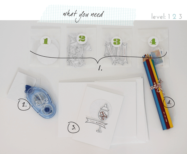 Card kits are a great way to trick your friends…I mean…convince your friends that crafting is an awesomely cool thing to do! Here’s a how this card kit came together: