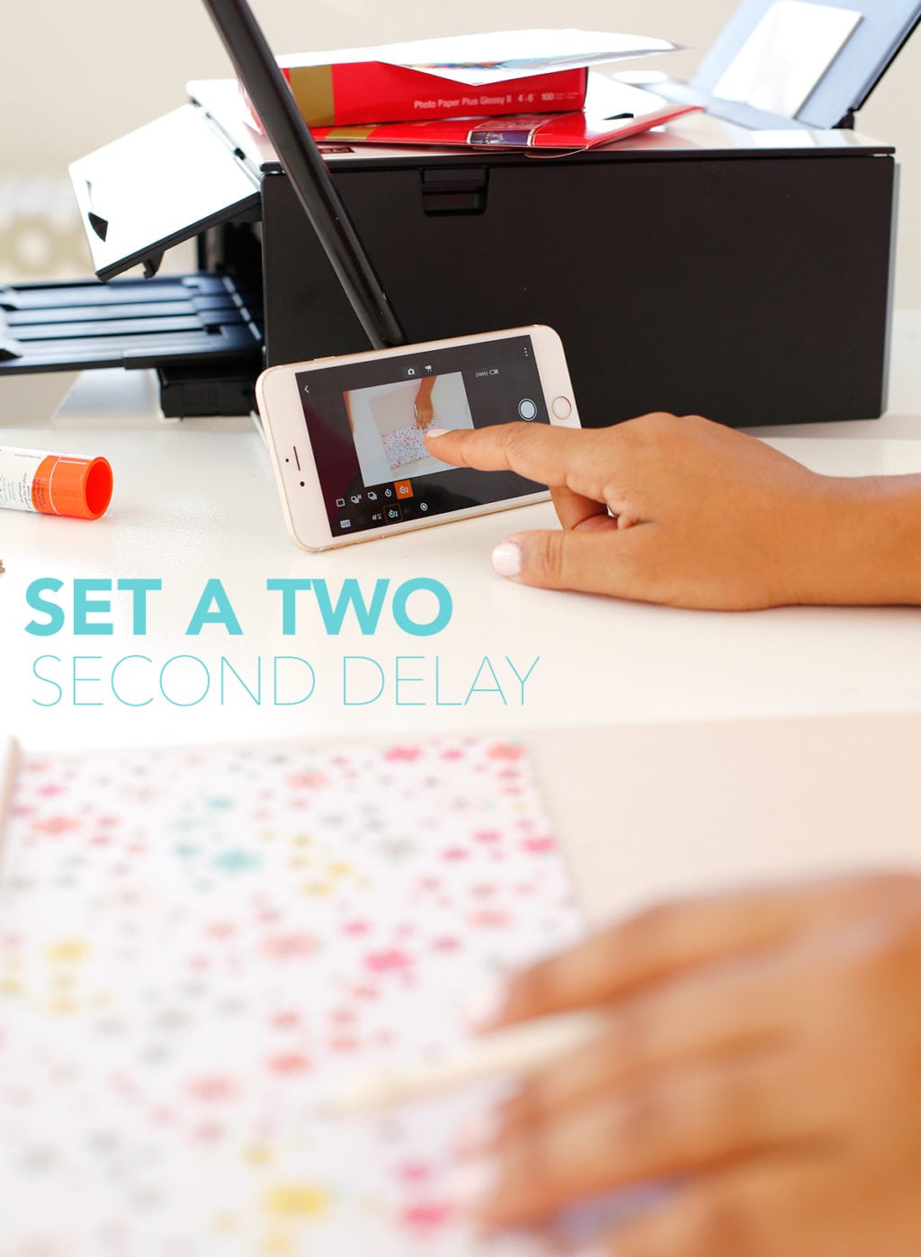 With the tripod in place and my phone at my side, I can set a two second delay, giving me enough time to activate the shutter and bring my hand back into the frame before the camera remotely shoots the image.