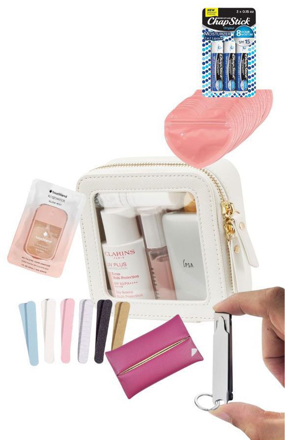 I am OBSESSED with this little compact zipper case! It holds SO much! Here’s what I pack in mine: