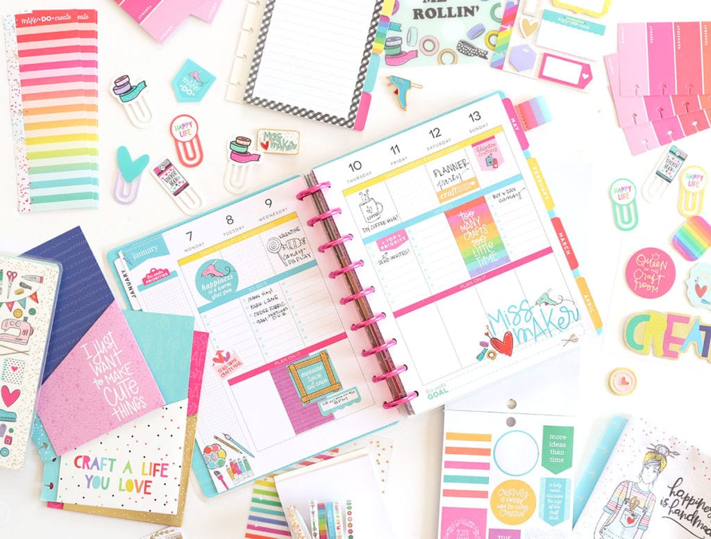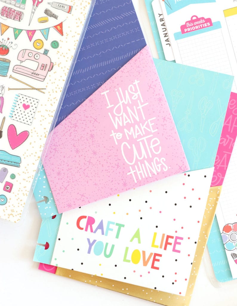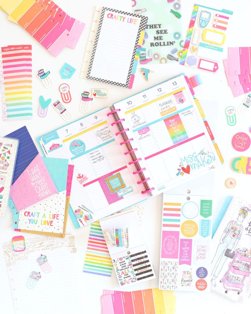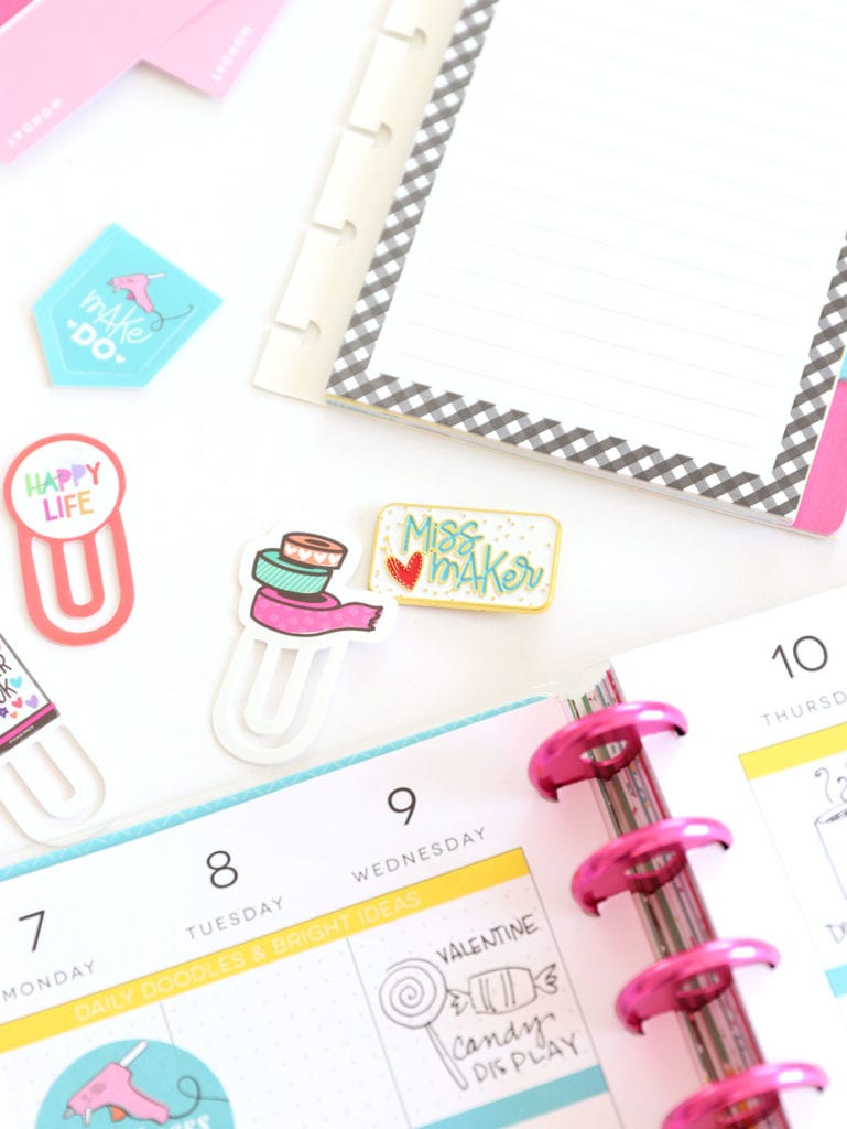 Girl! I hear ya. I spent a long time trying to settle into a planner that I loved. There are a TON out there. To get started with your planner, I would recommend picking a collection you like and sticking to that collection only. Don’t buy a TON of product until you figure out how you like to use your Happy Planner. Once you have a system down, then you can expand to more goodies. Start with a planner – like the Miss Maker planner – and add on a few accessories like the Sticker packs, Sticky Notes, Washi and Folders.