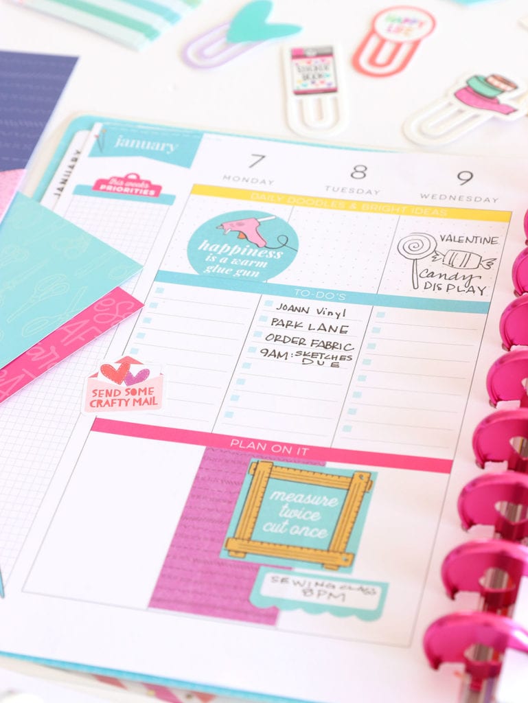 Today on the JOANN Facebook Page, I did a fun tour through the entire Happy Planner Miss Maker collection including some of my favorite tips and tricks for using this planner in your own life. Take a look at it HERE and ask your questions! I’d love to help answer them! Here are a couple of the most popular questions: