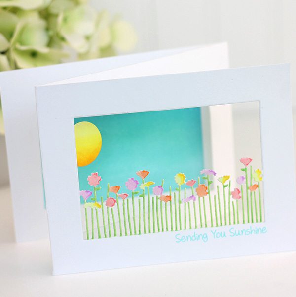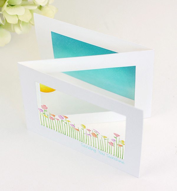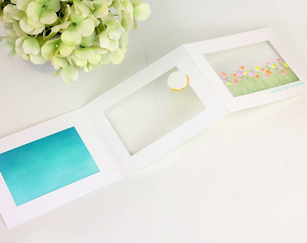 When you’re done, you’ll have something that is more like a work of art than a plain ‘ol piece of stationery. Since the card is pretty open on the front, you can use the back to write your message. Think of it as a stepped-up postcard!