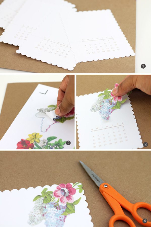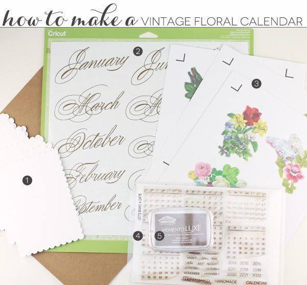 {3} The vintage floral images are also available through Cricut Design Space. Stationery designer, Anna Griffin has several Print Then Cut designs available through Design Space and these florals are part of her Vintage Florals image set. Just select the ones you want, resize them, and you’re ready to print them out and cut them. I printed twelve floral images onto the Cricut Printable Sticker Paper so that they’d be super easy to adhere to my calendar design.
